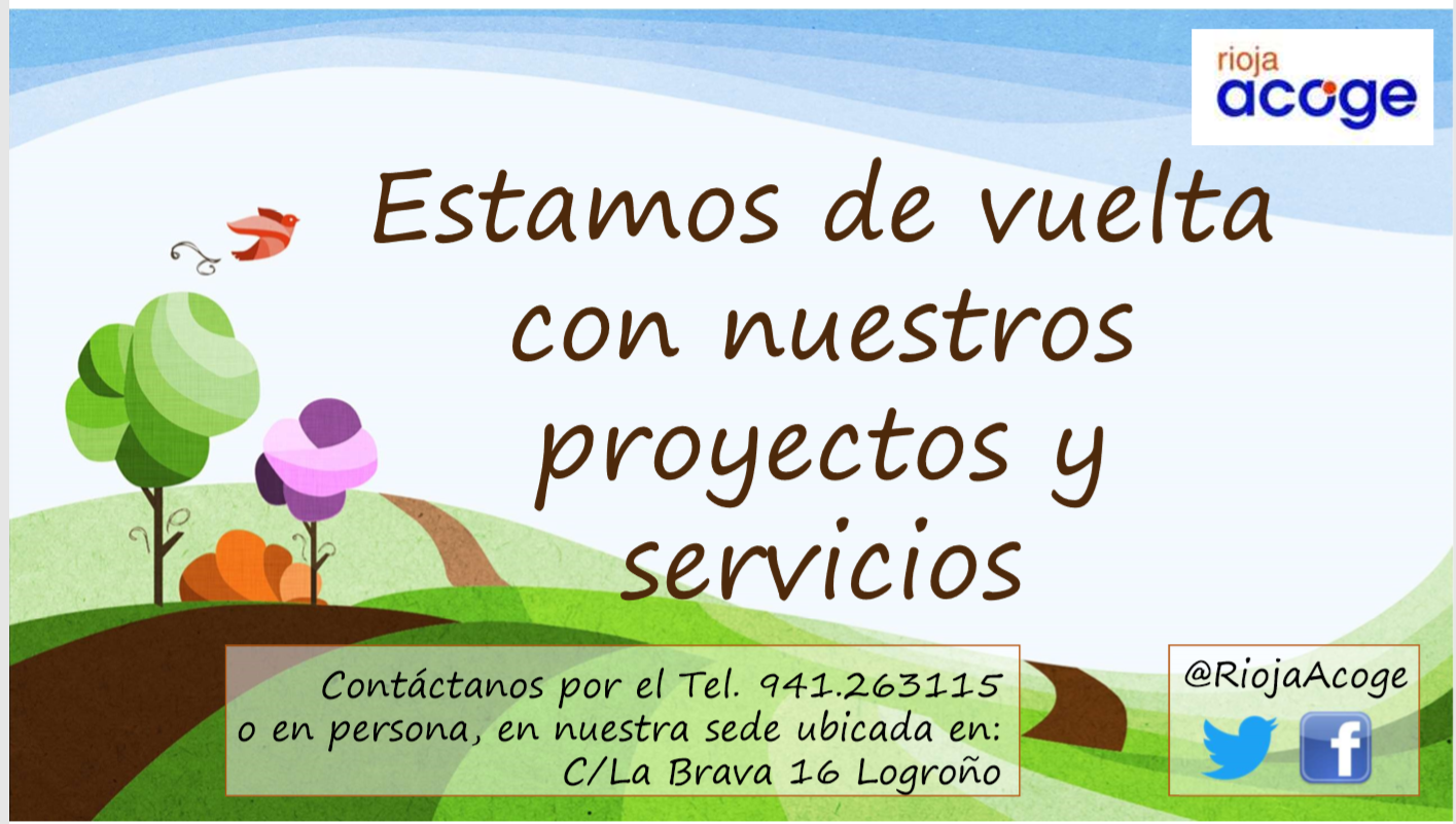 Luego de unas merecidas vacaciones, en Rioja Acoge estamos de vuelta a nuestras labores, para seguir ofreciéndote nuestros servicios y proyectos por la integración y la convivencia.