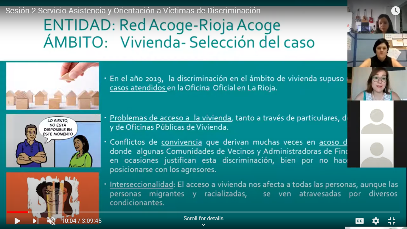 Anabel Marauri, nuestra técnico de igualdad de trato en Rioja Acoge, ha sido una de las encargadas de impartir una de la sesiones con la exposición de un caso emblemático en el ámbito de vivienda.