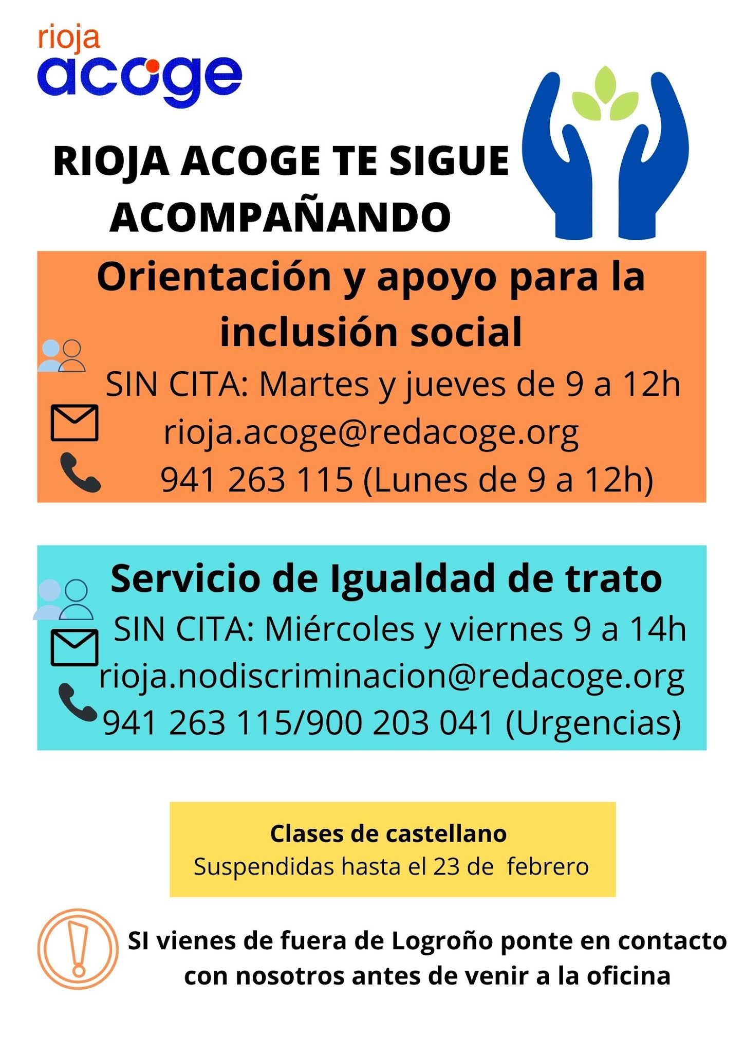TE SEGUIMOS ACOMPAÑANDO. RIOJA ACOGE ES UN SERVICIO ESENCIAL